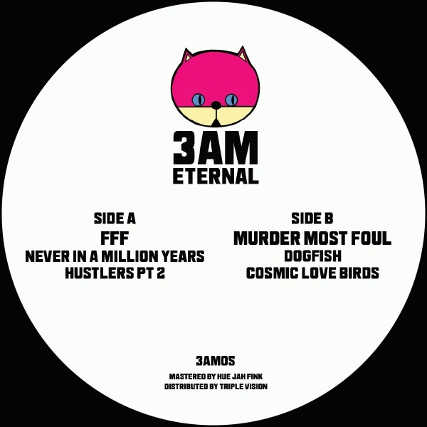 Been wanting to release Murder Most Foul on 3AM Eternal since hearing his amazing EP on Soundcrumpet. He delivered 2 amazing tunes "Dogfish" has his expertly blend of rare groove and hardcore ragga jungle. Raw but oh so smooooth. "Cosmic Love Birds" is something else, otherworldly vibes with an insane amen workout equals 100% fire!FFF returns with "Never In A million Years" which brings, rare groove, soundclash amen choppage in known FFF fashion, You can't stop the drum and you can't stop the bass!! "Hustlers pt 2" Brings manic filtered amen workout with rare groove clash vibes. Hustlers of life, never survive!